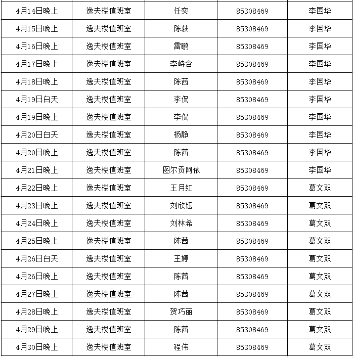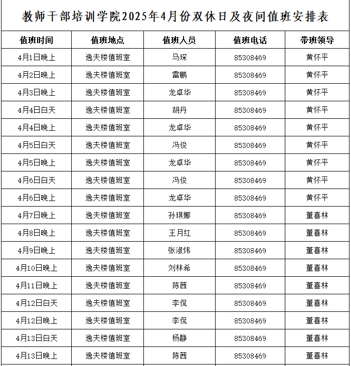 酷爱成人网 2025年4月份双休日及夜间值班安排表