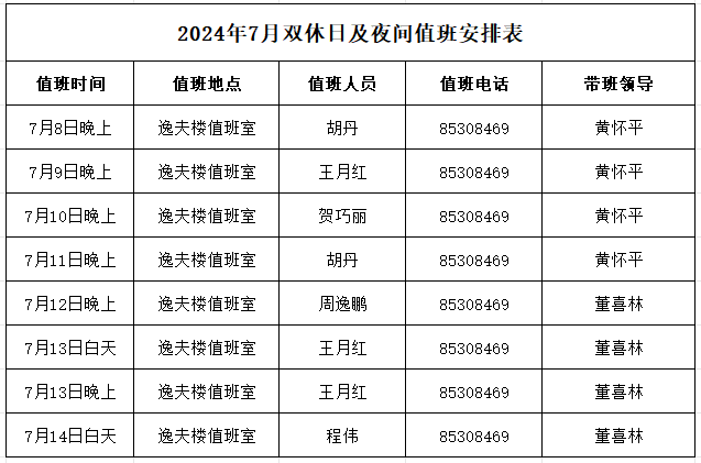 4.值班时间:上午:8:30—12:00 下午:14:30—17:30 晚上:17:30—21:30。
