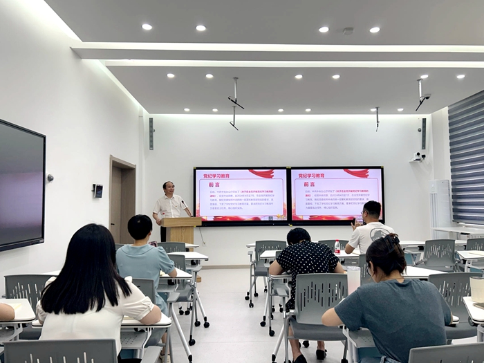 党总支书记黄怀平为全体党员作了题为《学纪 知纪 明纪 守纪》的党纪学习教育专题党课。学院教工第一、第二党支部党员及访问学者党员代表参会。