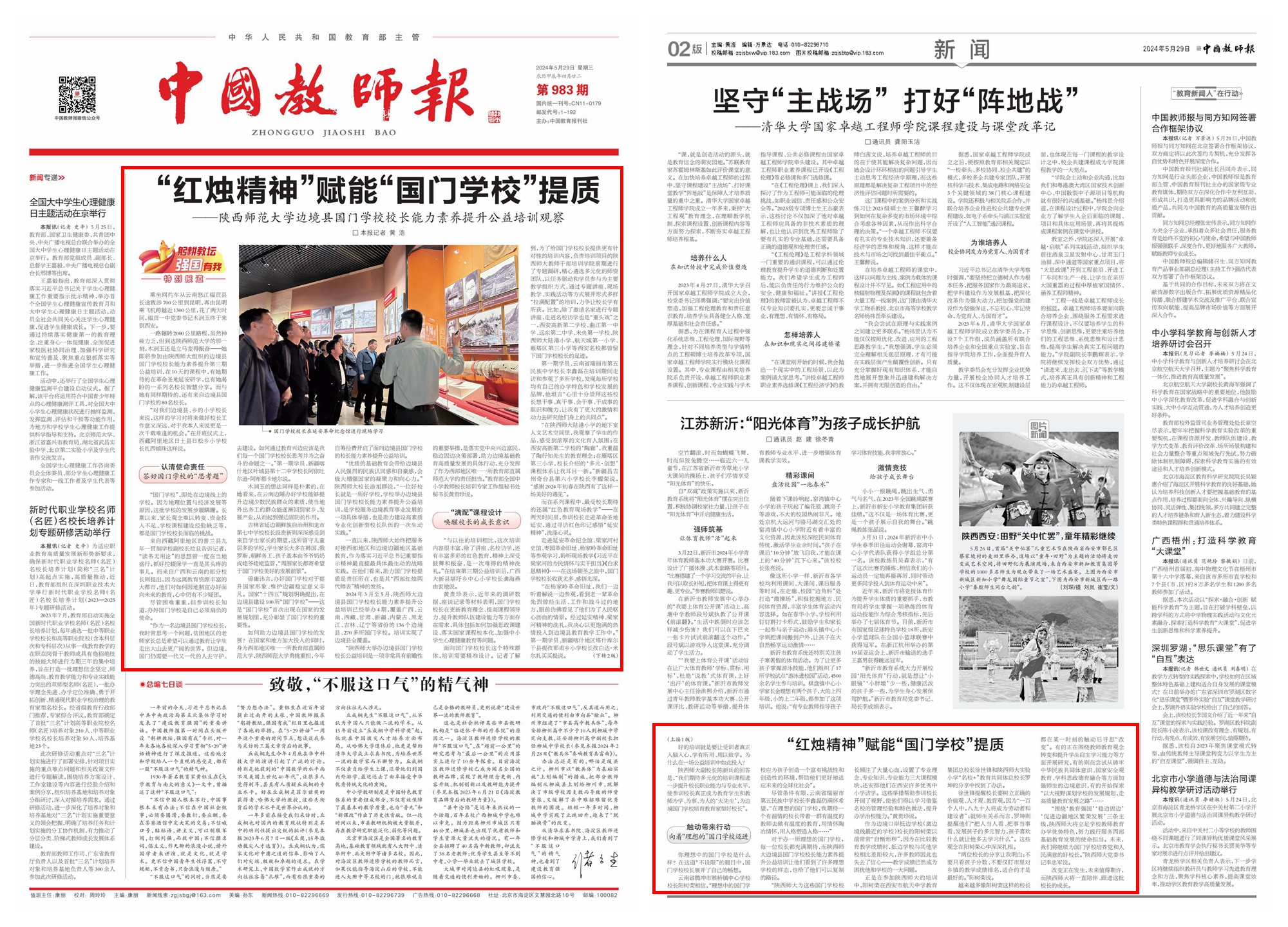 5月29日,《中国教师报》在头版头条刊登了题为“‘红烛精神’赋能‘国门学校’提质——陕西师范大学边境县国门学校校长能力素养提升公益培训观察”的深度报道。文章从“认清使命责任:答好国门学校的‘思考题’”“‘满配’课程设计:唤醒校长的成长意识”“触动带来行动:向着‘理想的’国门学校迈进”三个方面,展示了酷爱成人网